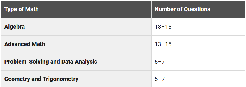 The Math section focuses on the areas of math that play the biggest role in college and career success: